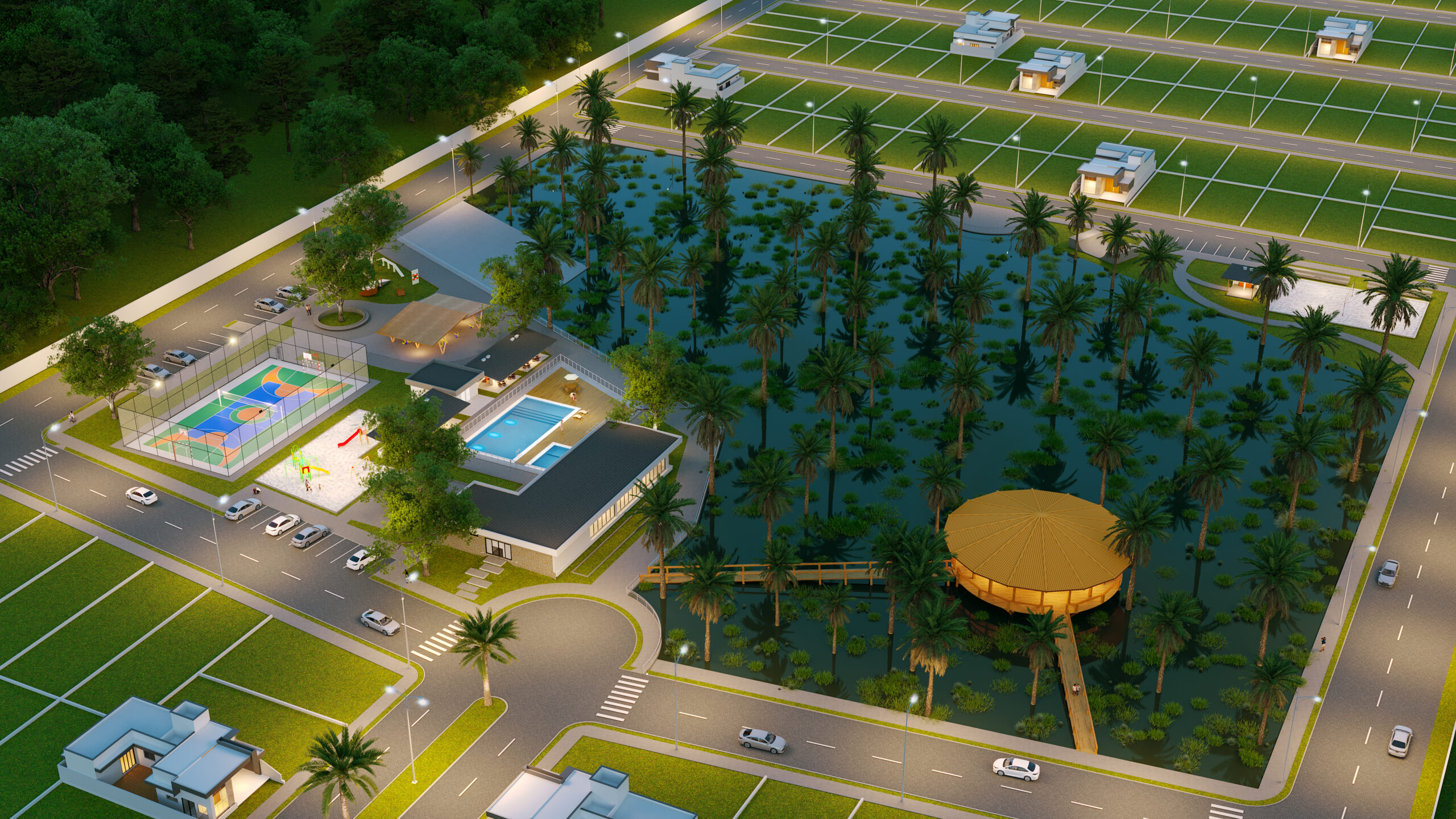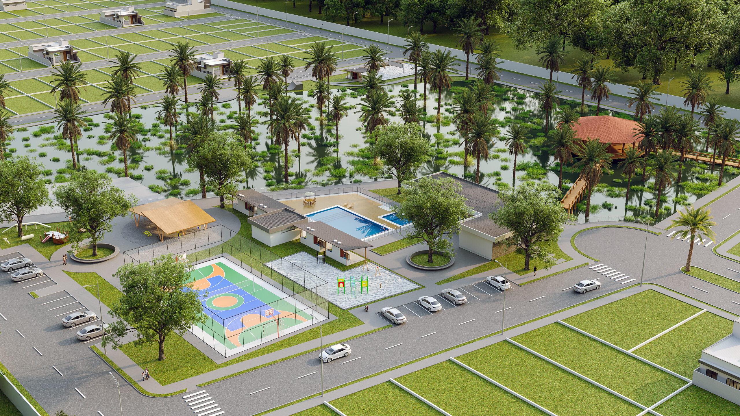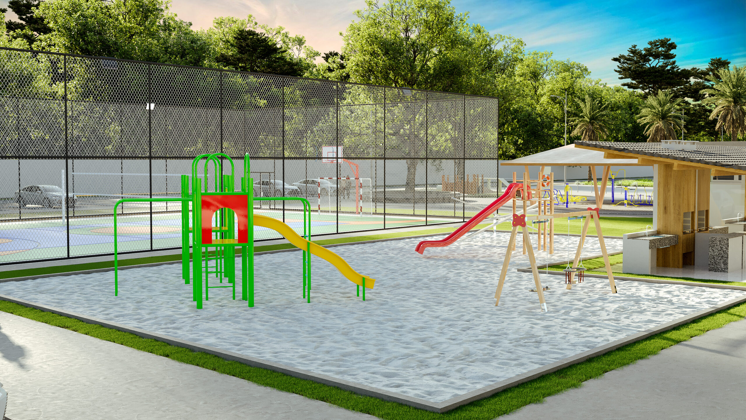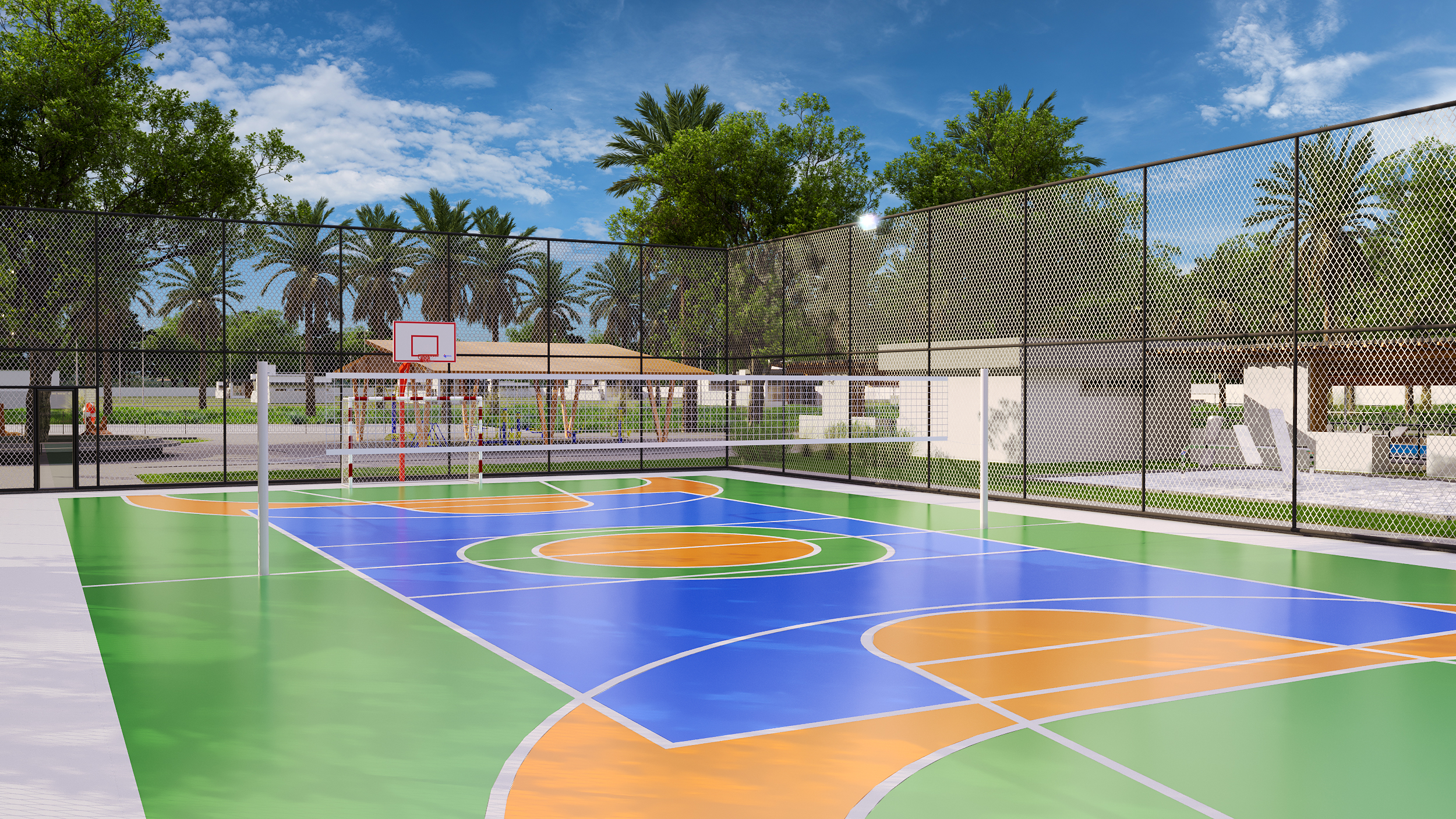 • Quadra de areia e quadra poliesportiva